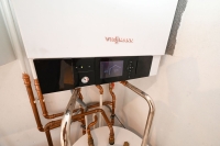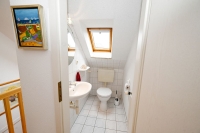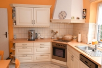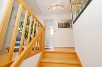 • Heizung und Warmwasserbereitung über eine gemeinsame Erdgastherme (Bei ständiger Nutzung würde sich der Einbau einer Wärmepumpe und  von Solarelemente anbieten.) Für die Technik ist im Hauswirtschaftsraum Platz vorhanden
