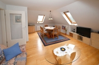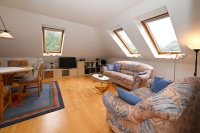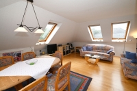 • 1 großes helles Wohnzimmer mit Zugang zur Terrasse