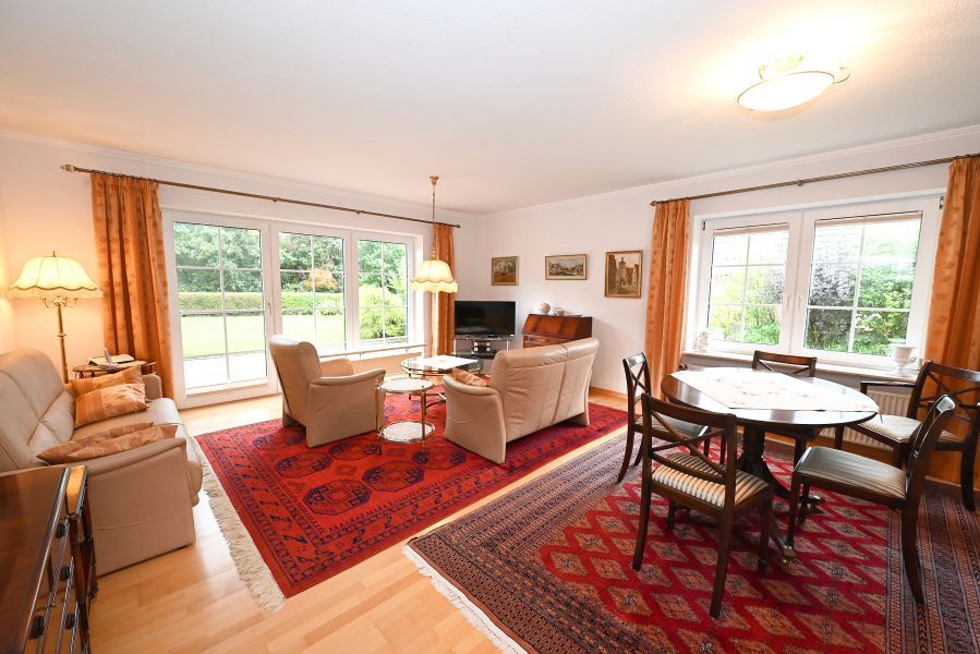 Die Wohn- & Nutzfläche der Ergeschosswohnung beträgt ca. 110 m². Bis auf 1 Stufe ist die Erdgeschosswohnung ebenerdig und barrierearm. Nach Absprache kann ein Teil der Einrichtung im Haus verbleiben (im Kaufpreis).